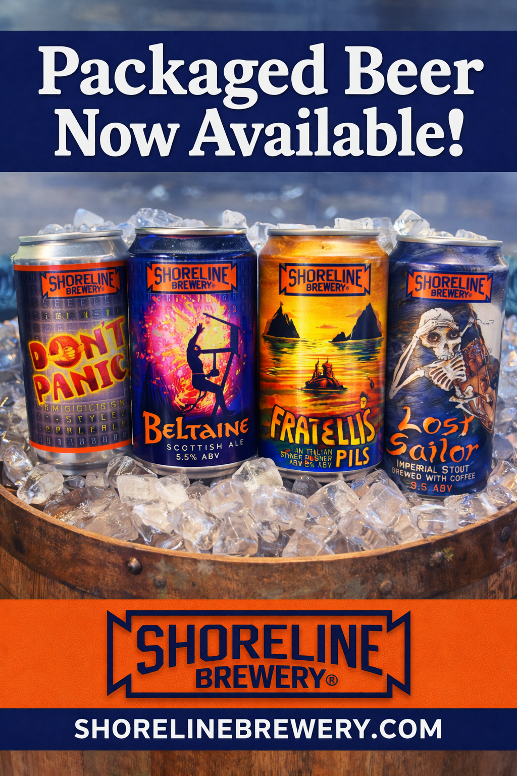 Shoreline Brewery craft beers on tap (TO GO or dine-in)